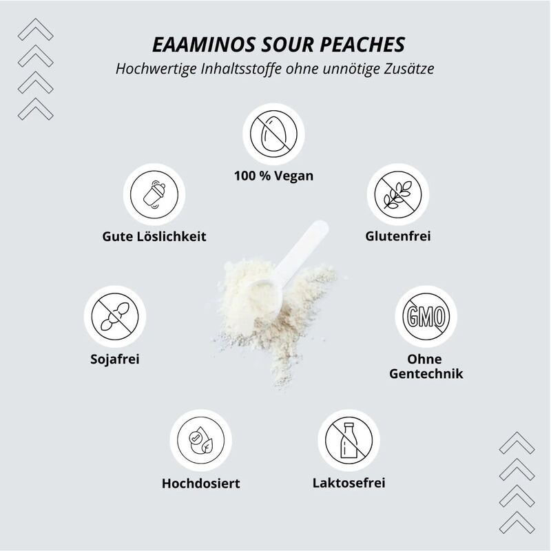 L-Leucin, L-Lysin-Hydrochlorid, Maltodextrin, L-Valin, L-Isoleucin, L-Threonin, L-Cystein-Hydrochlorid, L-Methionin, L-Tryptophan, L-Phenylalanin, L-Histidin-Hydrochlorid, Emulgator (Sonnenblumenlecithin), Schwarzer Pfeffer-Extrakt.